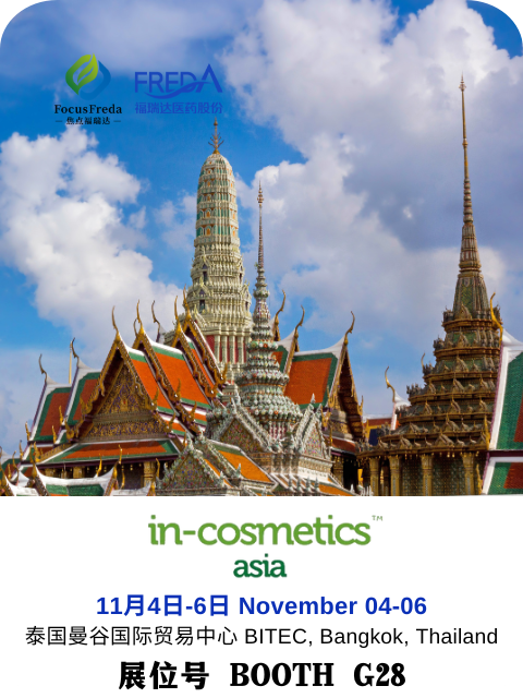As the premier gateway for personal care innovation in the Asia-Pacific region, in-cosmetics Asia 2025 is set to unfold at Bangkok International Trade & Exhibition Centre (BITEC) from November 4 to 6. We are thrilled to announce that Focusfreda —a national high-tech enterprise rooted in 30+ years of hyaluronic acid (HA) R&D heritage from Freda Pharmaceutical Group—will take center stage at this iconic event. With a sharp focus on solving unique skincare challenges (from humid-climate moisture loss to oil-sensitive complexions), and showcase 10+ function-oriented HA-derived ingredients, redefining efficacy standards for global beauty partners.